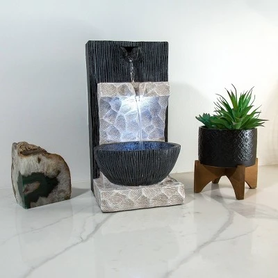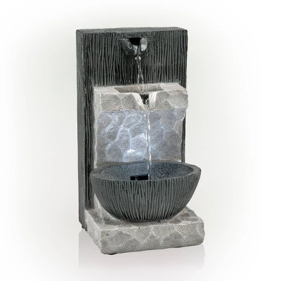 Elevate your home’s indoor or outdoor style with this elegant 14″ tall Modern Cascading Tabletop Fountain Decoration with LED Lights. This cascading fountain statue provides a tranquil and soothing addition to your indoor or outdoor living areas. Constructed from durable polystone and fiberglass with a classical and modern look, this tabletop fountain is weatherproof, rust-resistant, and resilient. This statue will bring a touch of artistic charm to your outdoor space. The fountain becomes illuminated with the included warm white LED lights, and is sure to light up your home or garden. Relax to the sounds of the soft, natural water flow as it trickles down through the fountain. Not only will this fountain provide you with serenity, it will also add a breathtaking display of beauty to your indoor or outdoor area. This majestic fountain provides an elegant addition to your courtyard, and gives your garden visual interest with its timeless design and classic style. For quick installation and convenient operating, the water fountain includes all necessary parts and a pump to begin creating an outdoor oasis. This decorative water fountain measures 7″L x 7″W x 14″H to fit almost any outdoor space and includes a one-year manufacturer’s warranty from date of purchase. Alpine Corporation is one of America’s leading designers, importers, and distributors of superior quality home and garden decor products. Alpine’s award winning in-house design team continuously develops new and innovative “statement pieces” for your home and garden. Your outdoor living spaces will be the envy of the neighborhood with our wide assortment of fresh, fashionable and contemporary products, from beautifully crafted solar garden stakes featuring patented motion and fiber optic lighting technology to gorgeous glass and glow-in-the-dark birdbaths and feeders.