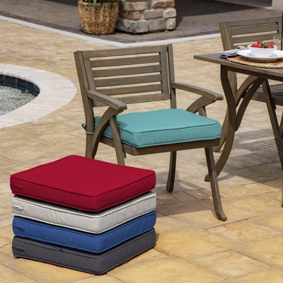 Arden Selections ProFoam Dining Seat Cushion is made with the same high performance, long-lasting, durable foam that came with your outdoor furniture set. These firm, yet comfortable outdoor foam patio cushions have a sleek and modern look adding clean lines to refresh your outdoor furniture. The foam comes in a compressed roll to reduce shipping waste and easily slips into the provided acrylic cushion cover. With the clean finish of the double welt and two sets of ties to hold in place this 100% acrylic cushion cover features durable, UV resistant EverTru Acrylic fabric, which resists fading and repels water and stains. The extended UV protection means your fabric will continue looking brighter longer as you enjoy your hours outdoors and comes with a 5 year limited fabric warranty. The stain and water protection ensure optimum use outdoors, with easy spot cleaning with soap and water, or a mixture of bleach and water for harsh stains. Arden Selections ProFoam comes in a variety of colors and styles all with easy to use extra long zippers that make changing your cushion a breeze. Look for our other Arden Selections ProFoam cushion styles to fit all your outdoor furniture needs.