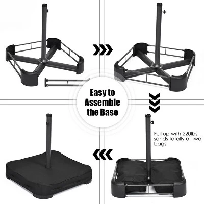 Costway 15Ft Patio Double-Sided Solar LED Market Umbrella Crank Base BeigeTanOrangeBurgundy