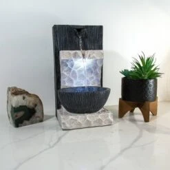 14″ Modern Cascading Tabletop Fountain With LED Lights Gray – Alpine Corporation