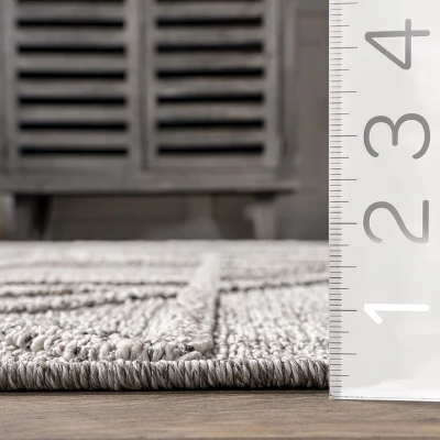 Soft color, modern design and versatility is now yours with this beautiful machine-made indoor/outdoor rug. Crafted using durable synthetic materials, this rug cushions your feet for ultimate comfort, and can create the perfect ambiance whether you decide to use these indoor or outdoor. A neutral color scheme with a high-low design makes this the ideal rug that pairs with any of your existing decor. Enjoy your time at home with our pet-friendly and easy to clean area rugs.